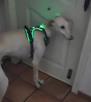 The harness offers over 8 hours of bright illumination on a single charge, perfect for multiple walks.