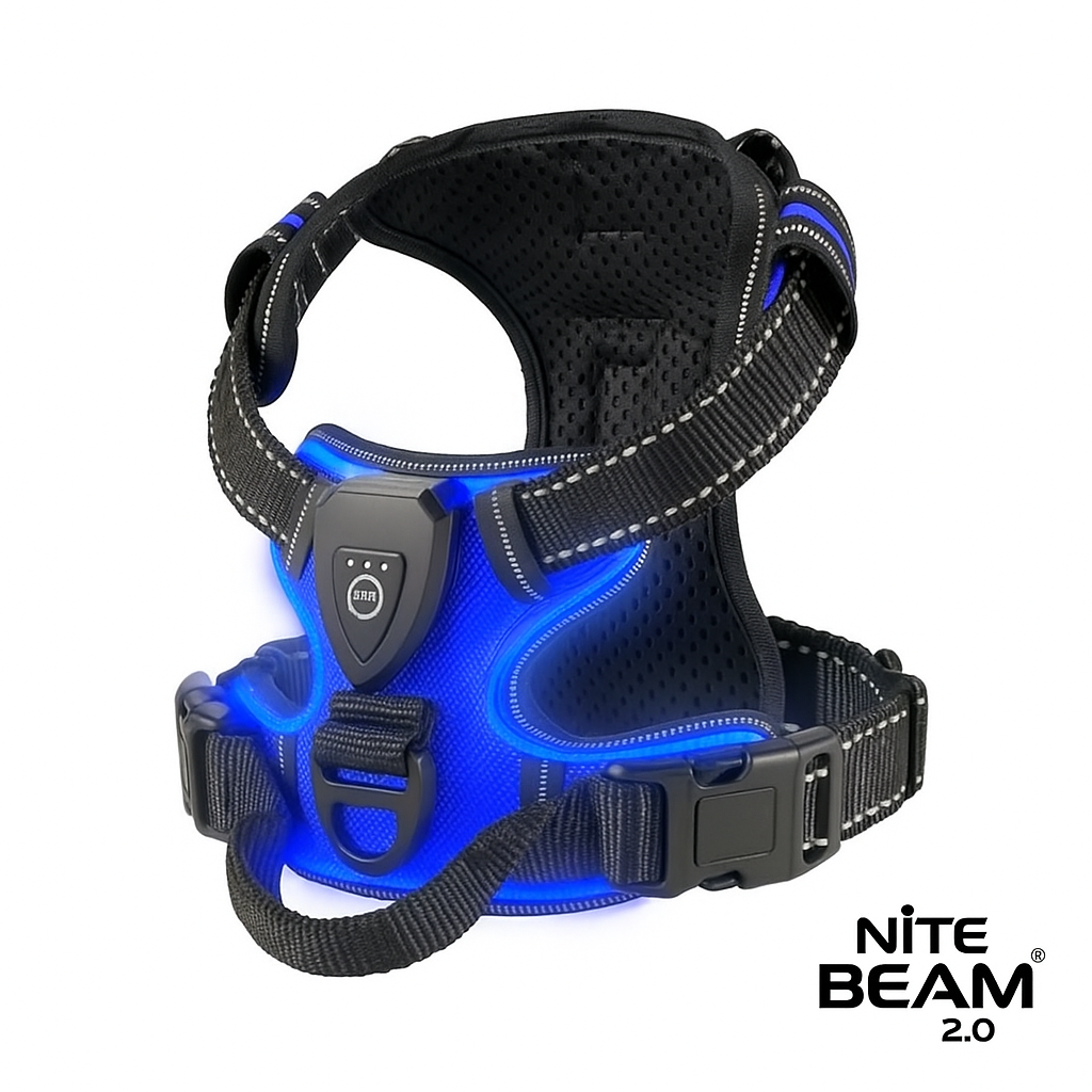 Over 1.2M pets are hit by cars each year, many during evening walks. Standard collars and harnesses disappear in the dark. That’s why we created the Night Beam 2.0 — a light-up, breathable harness that keeps your pup visible from every angle.